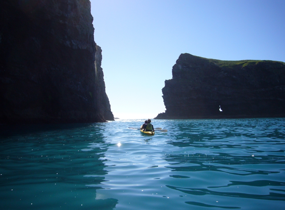 Explora la costa exterior de Banks Peninsula y la Reserva Marina Pohatu en kayak. Experimenta espectaculares acantilados, pilares de roca, arrecifes y cuevas marinas profundas y encuentra su fauna única.